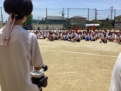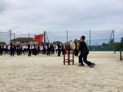 1時間目は、応援団の決意表明から、応援練習を行いました。紅白ともに初日とは思えないほど大きな声が出ています。