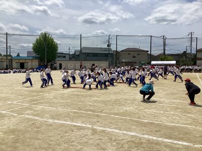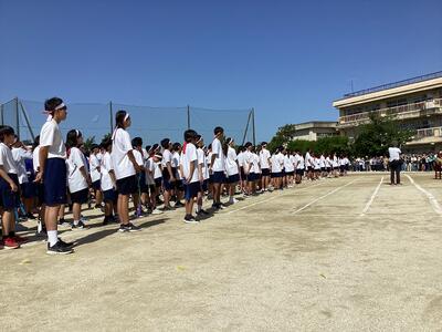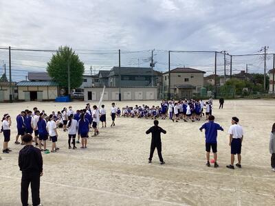 昨日は1日中雨で、室内での体育祭練習でした。本日は曇りのち晴れで、練習をするにはとても良い天気でした。紅白に分かれての応援合戦の練習や、学年ごとに学年種目の練習を行いました。