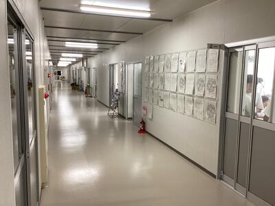 始業式後は、学活と並行して各学年毎に仮設校舎の見学を行いました。約1年間、仮設校舎での生活になります。