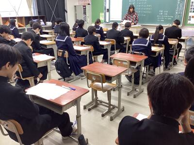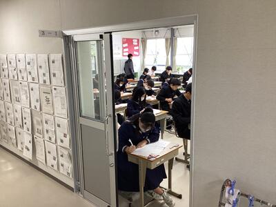 今日は、朝から雨が降り肌寒い日ですが、登校して教室に入るとすぐに教科書やワークを取り出し勉強を始める姿がいたるところで見られました。日ごろの学習の取り組みと成果を確認しましょう。