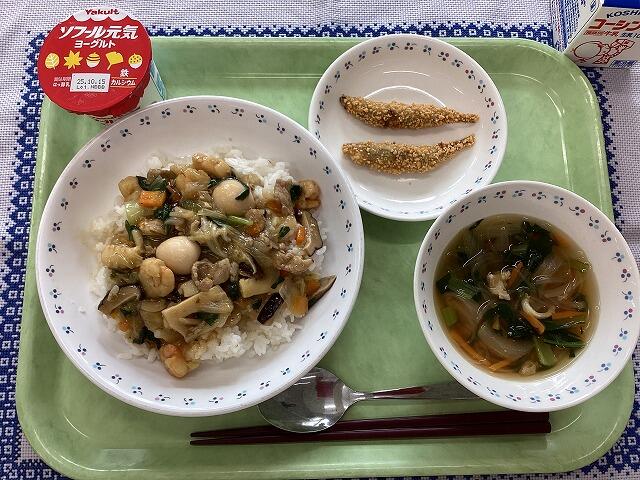 一覧へ 海鮮あんかけ丼 日時 2025年09月30日(火) 公開対象 給食室 詳細 海鮮あんかけ丼 きびなごのカリカリフライ 春雨スープ ヨーグルト 牛乳 ★今日は、海鮮のうま味たっぷりのあんかけ丼です。肉も野菜も入っているので、栄養 満点です。 作成者 柏第四中学校管理者 更新日時 2025-09-30 12:02:52