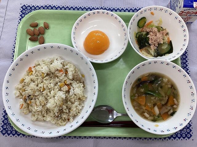 一覧へ ガーリックチキンピラフ 日時 2025年09月12日(金) 公開対象 給食室 詳細 ガーリックチキンピラフ ツナサラダ きのこスープ 黄桃缶 いりアーモンド 牛乳 ★ガーリックチキンピラフは、にんにくと黒こしょうの香りが食欲を誘います。 作成者 柏第四中学校管理者 更新日時 2025-09-19 11:10:30