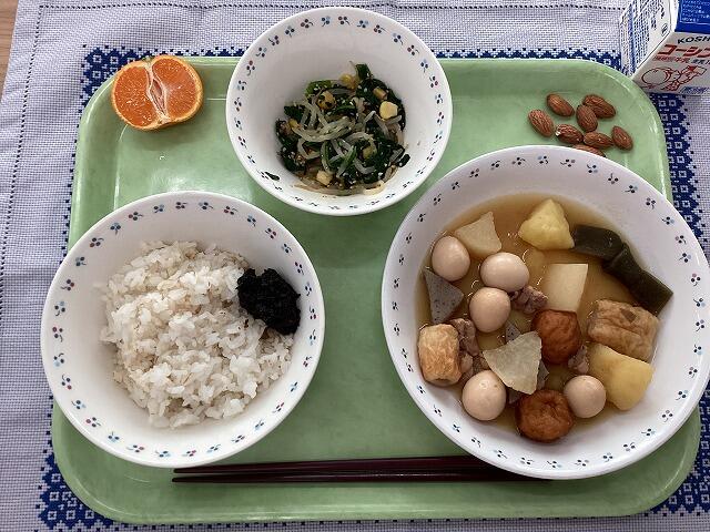 一覧へ おでん 日時 2025年12月18日(木) 公開対象 給食室 詳細 ご飯 のりの佃煮 おでん もやしとコーンのごま和え みかん いりアーモンド 牛乳 ★今日は、寒い時期に食べたくなるおでんです。大根は米のとぎ汁で下茹でしたり、 崩れやすいうずらの卵は、別の釜で煮たり、手間をかけてじっくり煮込みました。 作成者 柏第四中学校管理者 更新日時 2025-12-19 15:10:45