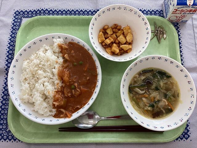 一覧へ ハヤシライス 日時 2025年10月02日(木) 公開対象 給食室 詳細 ハヤシライス 千切り野菜のスープ スパイシービーンズ&ポテト 小魚 牛乳 ★今日は、ハヤシライスです。給食のハヤシライスは、牛肉ではなく、豚肉で作ります。 玉ねぎをじっくり炒めて甘味を引き出しているので、コクがあります。 作成者 柏第四中学校管理者 更新日時 2025-10-02 12:37:07