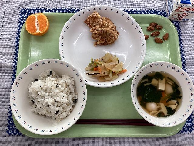 一覧へ 鶏肉の唐揚げ 日時 2025年12月09日(火) 公開対象 給食室 詳細 わかめご飯 鶏肉の唐揚げ 大根のゆず和え うずら卵のすまし汁 みかん いりアーモンド 牛乳 ★今日は、10月に実施したL1ーグランプリの1学年の優勝クラスである1年2組の リクエストで鶏肉の唐揚げです。カリっと香ばしく揚がった唐揚げは、みんな大好き です。 作成者 柏第四中学校管理者 更新日時 2025-12-11 13:28:47
