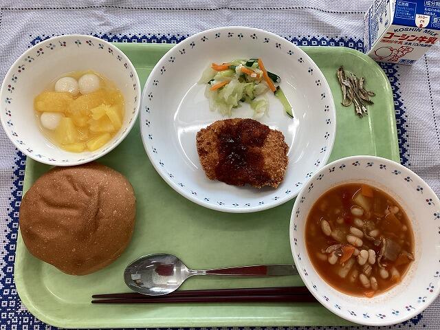 一覧へ チキンカツ 日時 2025年09月25日(木) 公開対象 給食室 詳細 丸パン チキンカツ キャベツのマリネ ミネストローネ フルーツ白玉 小魚 牛乳 ★今日は、チキンカツをパンにはさんで食べるセルフバーガーです。明日は、市内駅伝なので チキンカツのカツで、勝利を意味する「勝つ」と気合を入れる意味の「喝っ」の願いを込めま した。練習の成果を出し切れるように、願っています。 作成者 柏第四中学校管理者 更新日時 2025-09-26 14:17:56