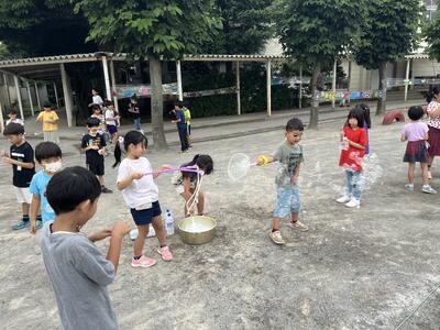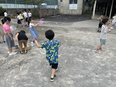 子ども達は,ストローやうちわ等を使って,様々なシャボン玉をつくって楽しみました。