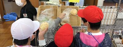 初めて皮むきをした児童も多く、とても嬉しそうな3年生でした。皮むき後、給食室まで届けて「おいしく調理してください」と伝えていました。