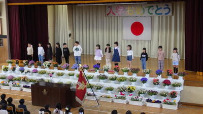 6年生からは歌と呼びかけ,5年生からは招待状,3・4年生からはメダルとメッセージ,2年生からはアサガオのたねのプレゼントが1年生に贈られました。1年生からは,しっかりとお礼の言葉がありました。