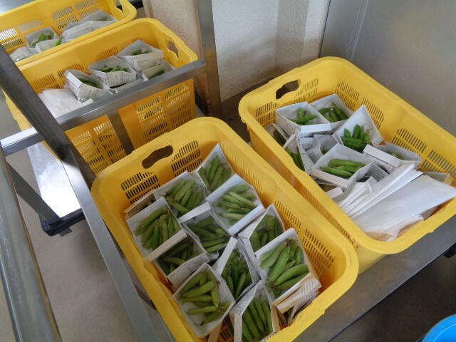子ども達でした。給食室に持って行き、「おいしく作ってください。」と調理員さんに渡しました。