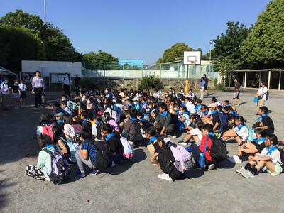 本日【23日(火)】,全校で今年度第1回目の避難訓練を行いました。大きな地震が発生したという想定で,訓練を行いました。1年生にとっては初めての避難訓練でしたが,「お・か・し・も」の約束を守り,しっかりと避難することができました。他の学年の児童も新しい教室からの避難経路を確認しながら,素早く避難することができました。
