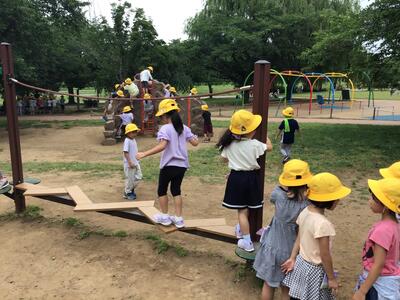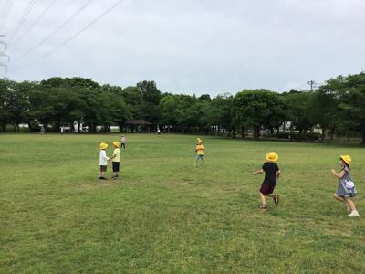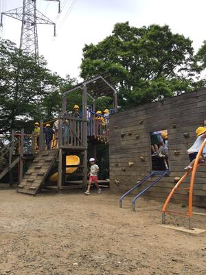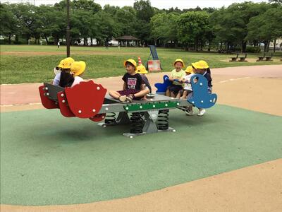 ふるさと公園に行き,クラスごとに遊具や公園の周りの散策等をして過ごしました。子どもたちは遊具の使い方や公園にあるさまざまなものを見たり,生き物や植物の観察をしたりしました。