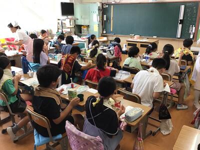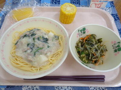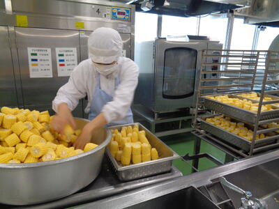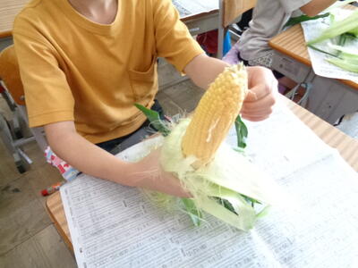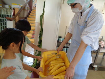 給食として食べたとうもろこしは、とても甘くて、子どもたちも先生方も大喜び。