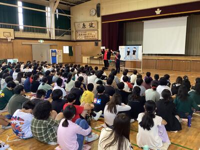 本日【2月26日(水)】,2年生対象にグループSECさんによる「いのちの授業」を行いました。どうやって産まれてきたかや自分のことを大切にすること,相手を尊重すること,いろいろな考えや性があっていいことなどを分かりやすく教えてくださいました。