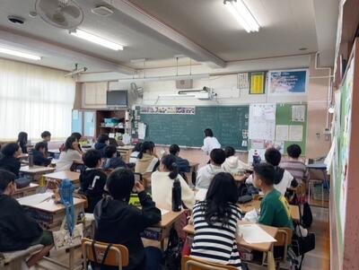 クラスごとに貴重な体験をすることができ,子どもたちは一生懸命メモをとったり,持参したクロムブックで写真を撮ったりしていました。