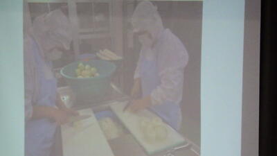 の皆さんに皮むきの体験をしてもらいました。図書館指導員の絵本の読み聞かせの後、作業開始