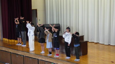 6年生の発表では,ゴショレンジャーが登場し,一人一人の個性を大切にして欲しいというメッセージとともに「世界に一つだけの花」の合唱を披露しました。