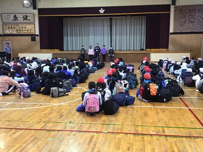 冬休みの生活についての話では,担当の先生から「三つの車」(救急車・パトカー・消防車)のお世話にならないようにということや今年の1月に発生した地震のような災害に備えることの大切さについてお話がありました。
