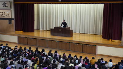 始業式の校長先生の話では,冬休みを大きな事故やけがもなく過ごすことができたことや3学期は1年間のまとめの学期であり,次の学年につながる学期であるという話がありました。また,困ったことがあったときには,担任の先生以外にも多くの先生に相談することができるという話もありました。