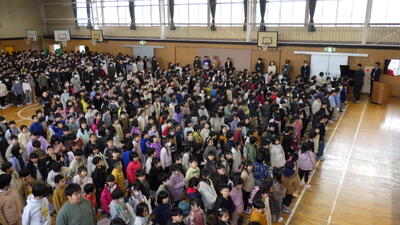 本日【2月3日(月)】,2月の全校朝会と新児童会役員任命式が行われました。