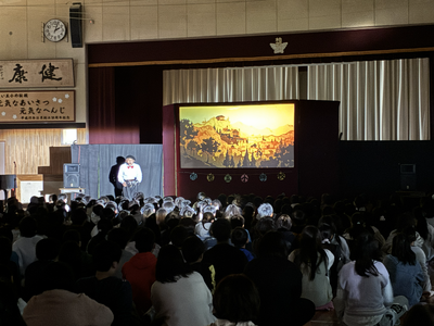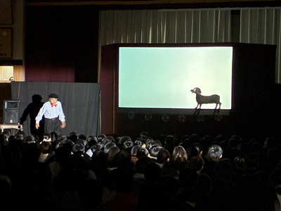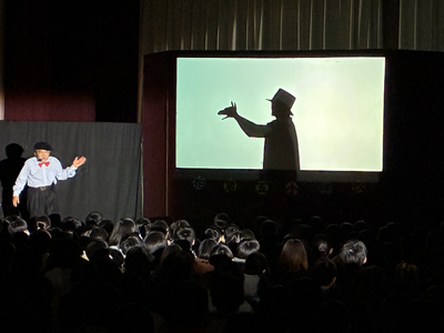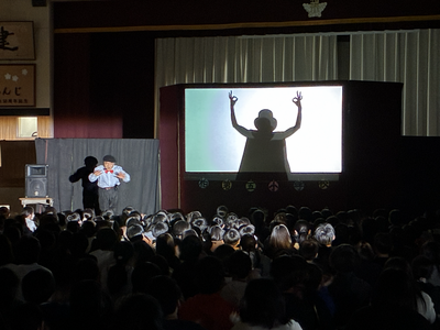 影絵劇団にお越しいただき,普段あまり見ることのない影絵を鑑賞しました。