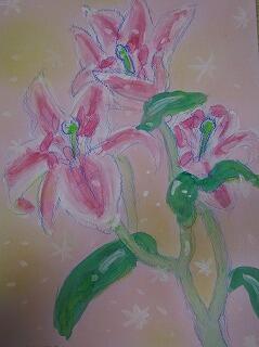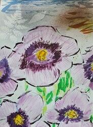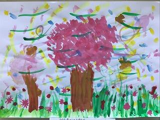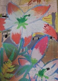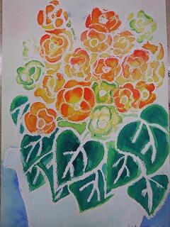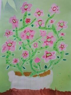 春の風や雰囲気を感じたり、季節の花を見てスケッチをしたりして、クレヨンと絵の具で,花を中心に描きました。