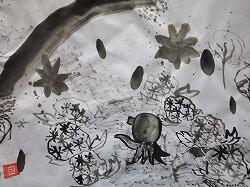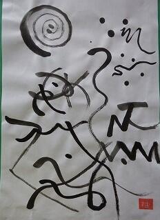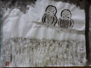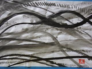 濃い墨、薄墨をのよさを生かし、技法などを取り入れて自由に描きました。