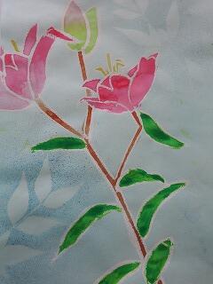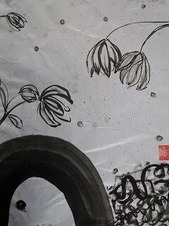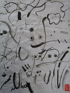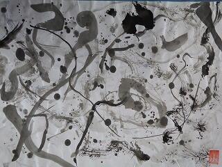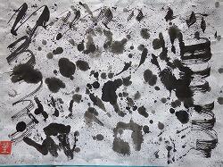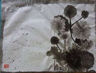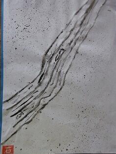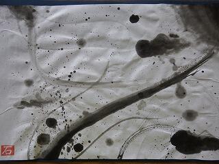 墨を墨色を変え、技法を使って、絵の具で描くように和紙にかきました。