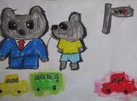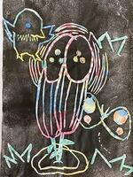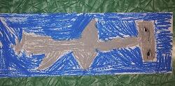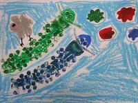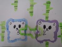 型紙を使って、ローラーで形を写しました。形から想像して、クレヨンで描き込みもしました。