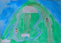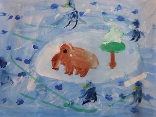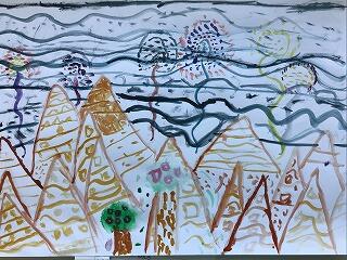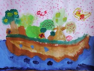 絵の具の使い方を練習しながら、自由に想像をふくらませて、絵の具で島を描きました。