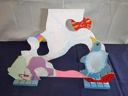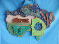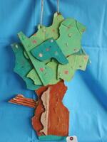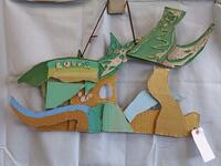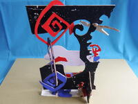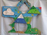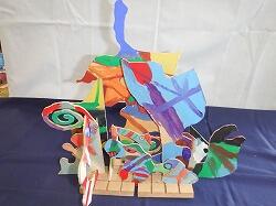 糸のこぎりで,曲線の寄り道をしたピースを作りました。組み合わせて,イメージを持って,着色し作品にしました。