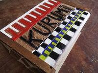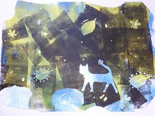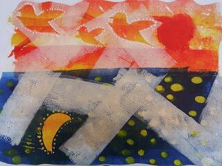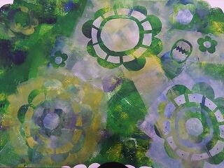 ローラーの扱いを工夫して、ステンシルも加えて作品づくりをしました。