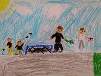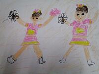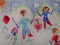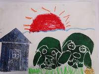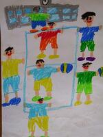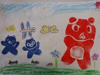 初めての運動会の思い出をクレヨンで描きました。運動会当日は、雨の中、がんばりました。