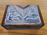 現在、過去、未来からテーマを決めて、木彫りにして、着色しました。正面には、各クラスの写真をプレートにして、入れています。好きな曲のオルゴールを入れて完成しました。