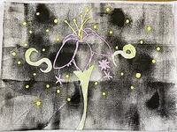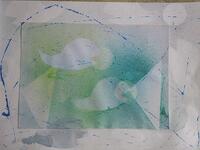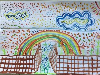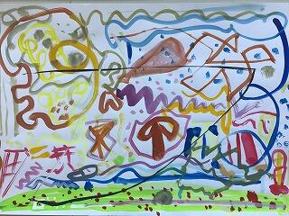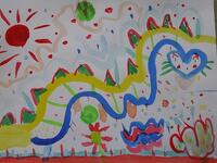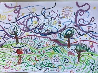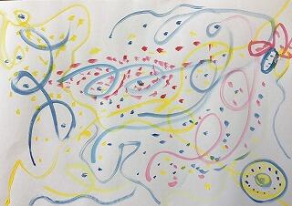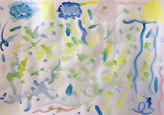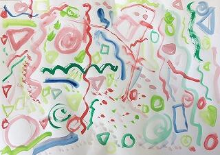 水彩絵の具を使って、線や点などでのびやかに表現しました。
