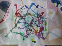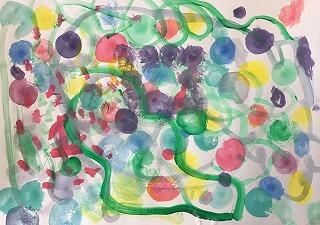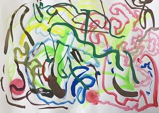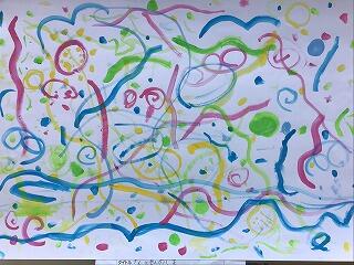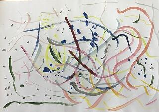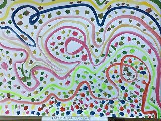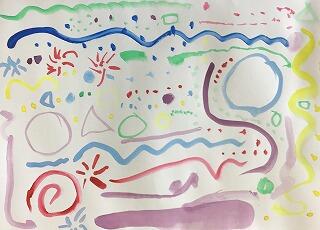 絵の具に混ぜる水の量を変えて,線や点で自由に描きました。いろいろな描き方を試してみました。