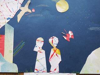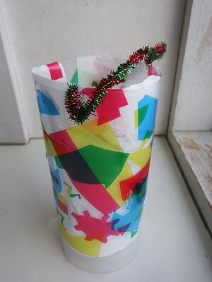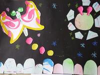 光を通す材料をペーパーではさんで,光の飾りをつくりました。