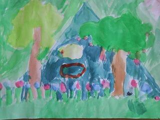 ダンボールを自由に切って,組み合わせて広場を作り,イメージのままに自由に着色しました。