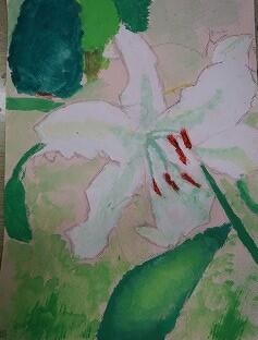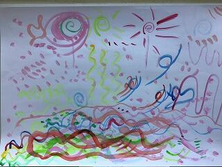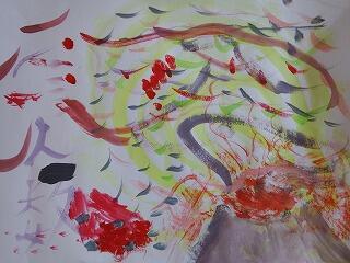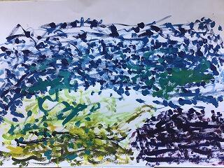 絵の具と水の量を調節しながら,色や筆の動きを自由に楽しんで描きました。