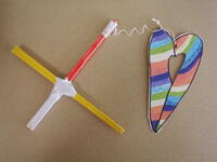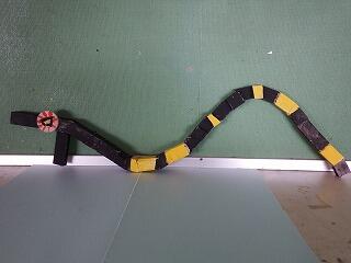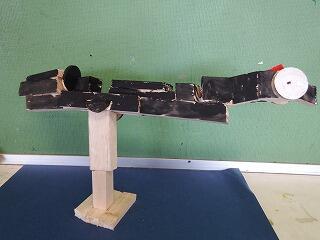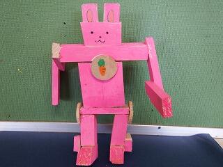 切った角材を,うすい板でつなぎ,動く仕組みを生かした,作品づくりをしました。