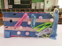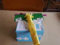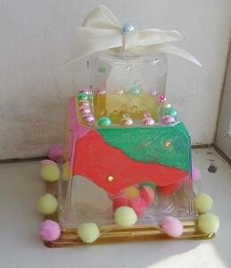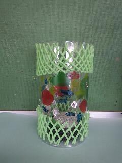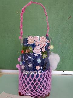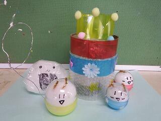 紙の箱に,飾りをつけて、楽しく変身させました。