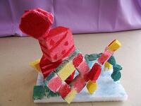 紙箱を飾って、身の回りの材料で思い思いの形に、変身させました。