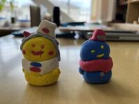 紙粘土ですきなマスコットをつくりました。磁石を埋めて,くっつくようにしました。