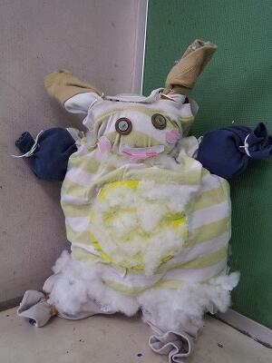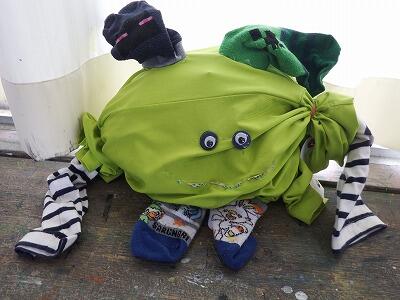 使わない衣類を持ちよって、中に詰め物をし、新しい生き物を作りました。かわいらしい仲間が、でき上がりました。