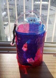 セロハンを光に透かして,色の美しさを楽しみながら,作品づくりをしました。