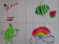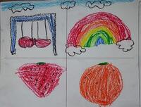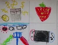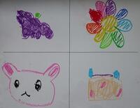 画用紙の4つのわくに,クレヨンで好きなものを自由に描きました。