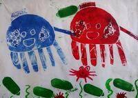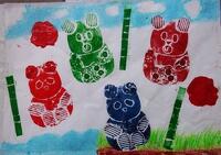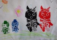 型紙を使って,並べたり重ねたりして,絵の具で写すことを楽しみました。