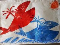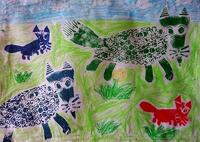 紙を重ねて,生き物の型紙をつくり,印刷しました。