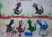画用紙の4つのわくに,クレヨンで好きなものを自由に描きました。