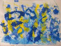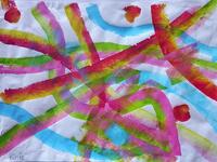 絵の具と水を合わせ,いろいろな色を使い,自由に描いてみました。水の量を変えたり,筆の使い方を工夫したりして描きました。